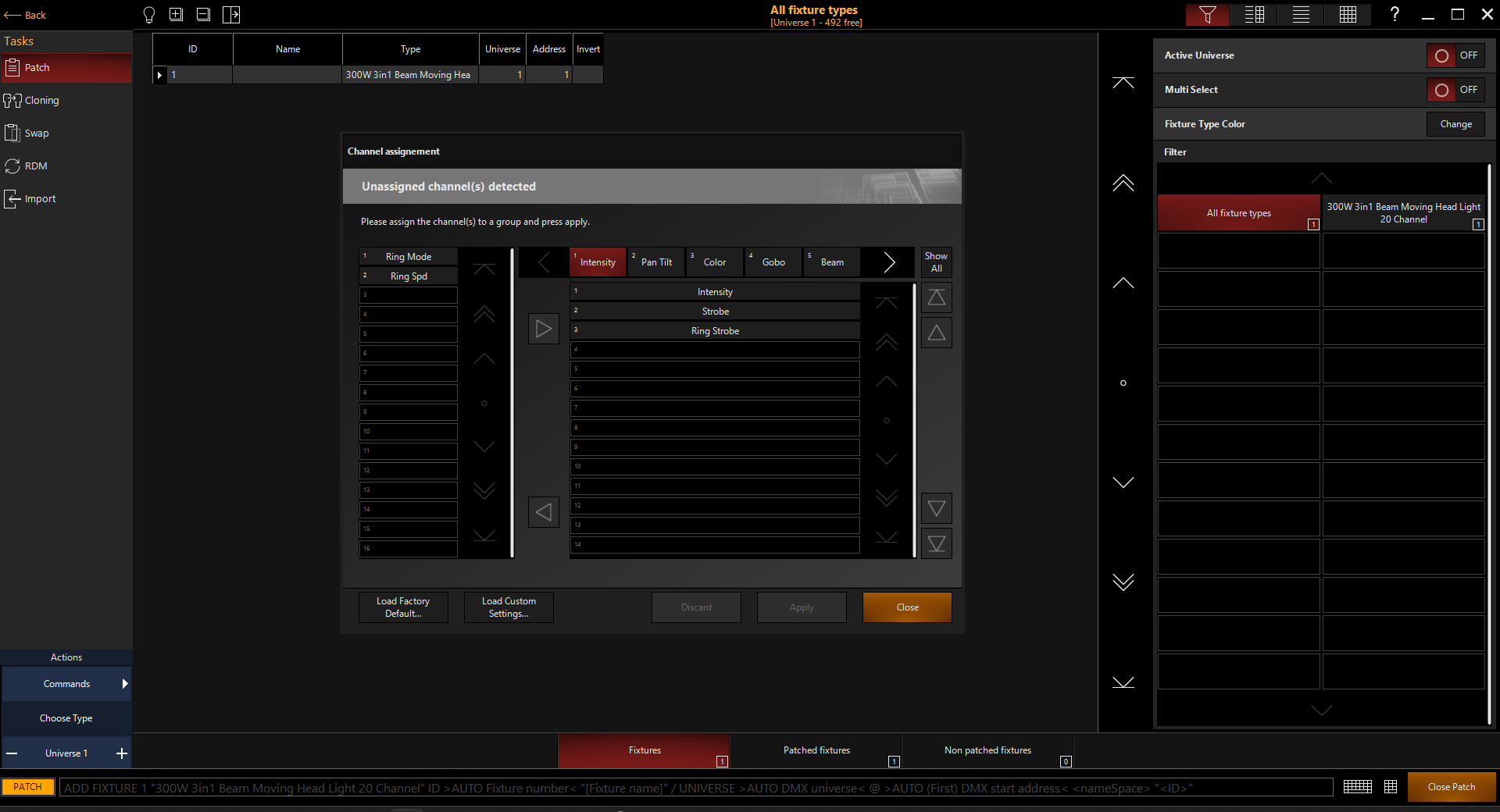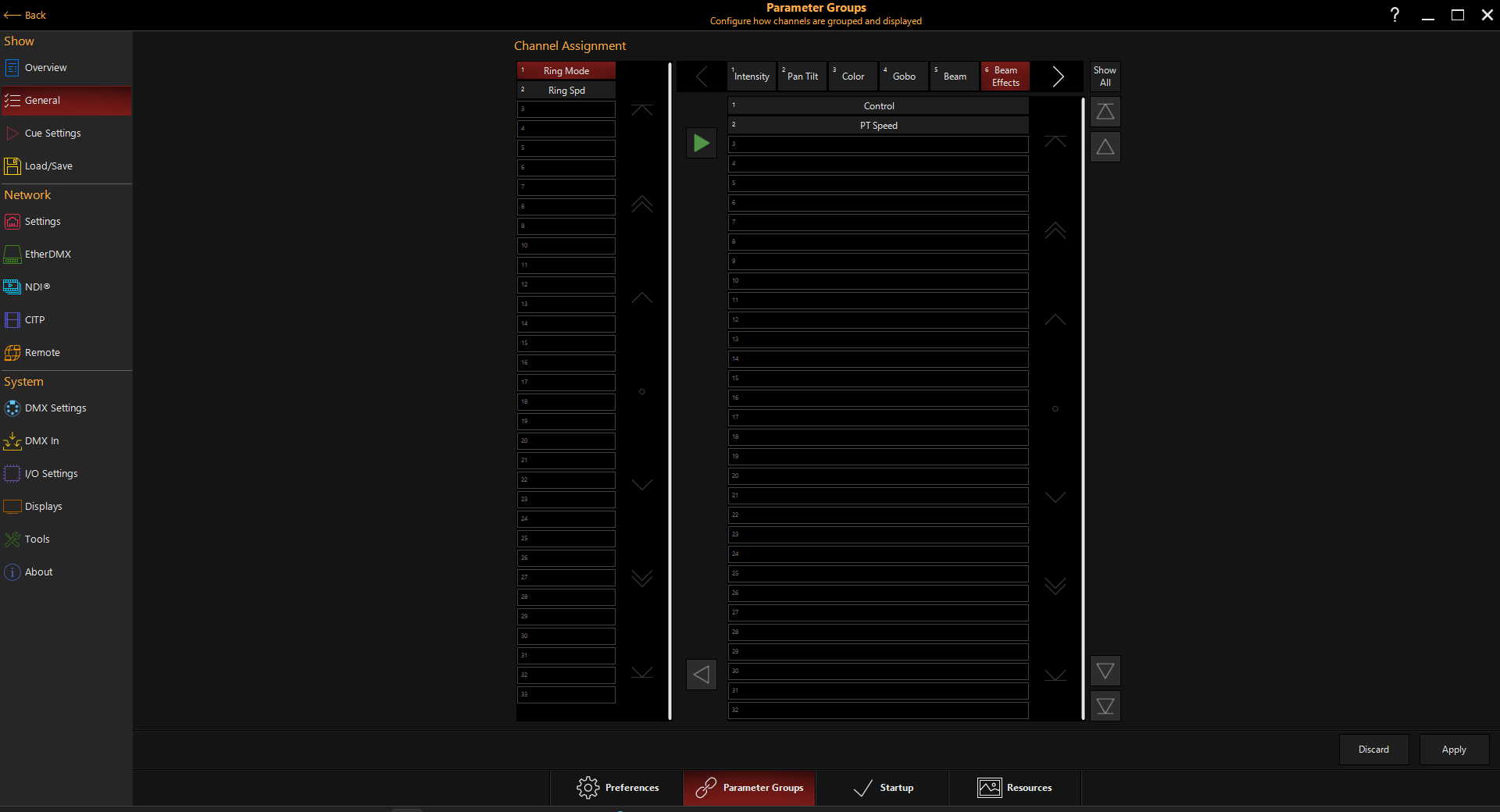 For example, you may want to move the intensity parameter to the color parameter group. Just like you can assign the āunassigned channelsā, you can move ones already assigned.